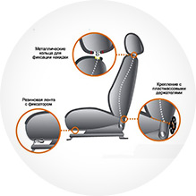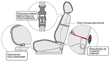Надежное крепление в 3-ех местах не даст елозить накидке по креслу
